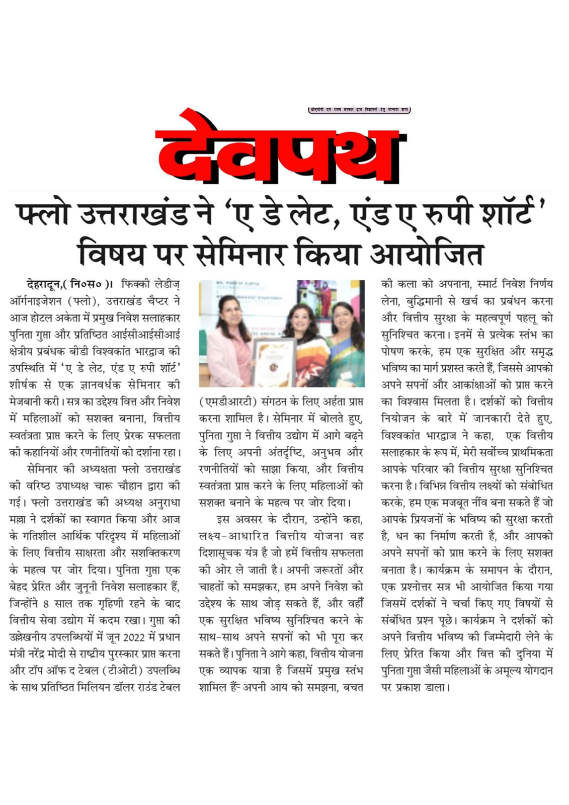 फ्लो उत्तराखंड ने ‘ए डे लेट, एंड ए रुपी शॉर्ट’ विषय पर सेमिनार किया आयोजित
